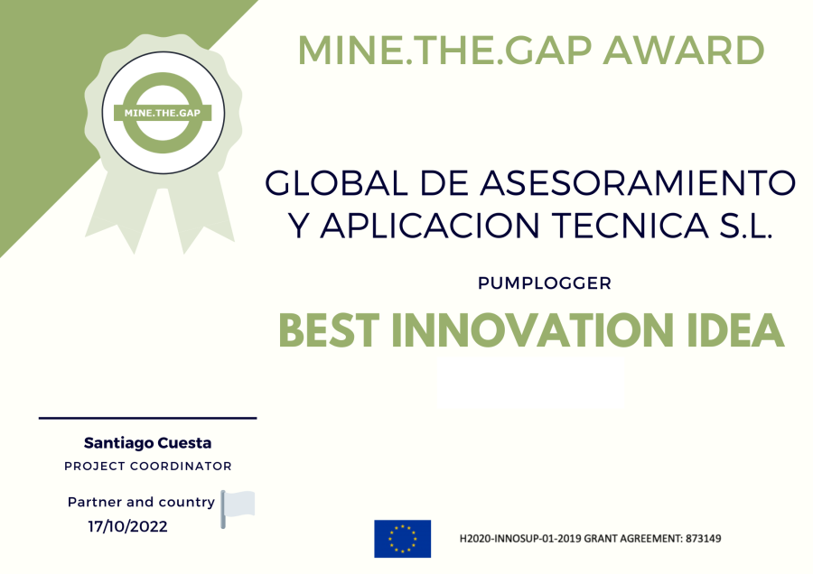 MINE.THE.GAP provides direct financial support to SMEs through innovation vouchers. These vouchers are dedicated to the preparation of strategic plans, validation of ideas and proof of concepts/demonstrations activities to innovate in the mining and raw materials value chain. ATEGLOB has been recognized as the company with the most innovative idea in 2022.
